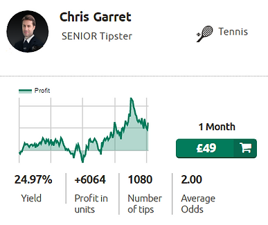 To get 30 days BIGGER ODDS TIPS from Tennis Expert price is 15.99 euro